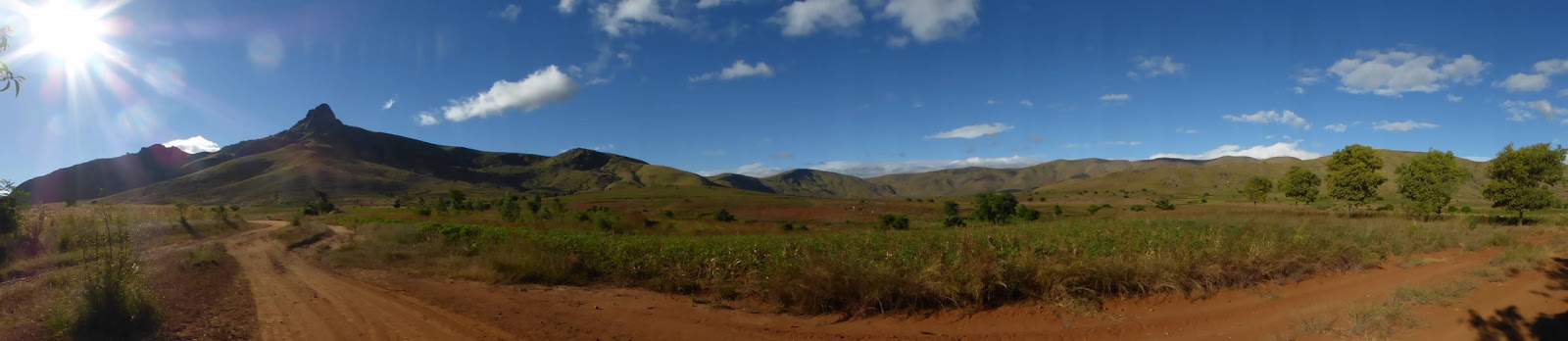 Au centre le grand Tsaranoro, une falaise de granit de 800 m de hauteur. On y pratique le best jump ! Je voulais essayer mais Coralie a refusé ! Tant pis je réserve ça pour Fred. |